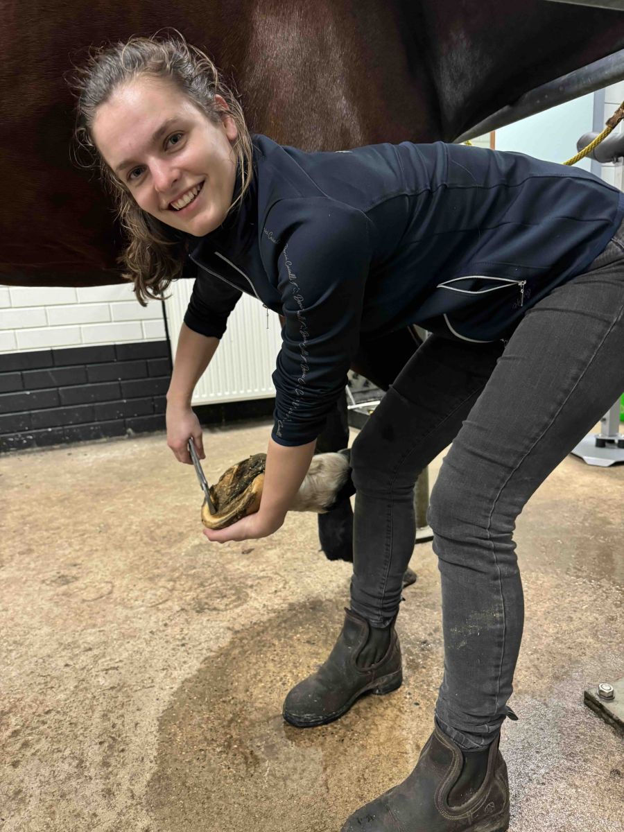 Maureen is in 2022 afgestudeerd en daarna heeft daarna een jaar de Equine Rotating Internship gedaan bij de Bosdreef (dat is een zeer grote paardenkliniek in België). In deze tijd heeft ze al veel extra dingen geleerd over ziekten en orthopedische problemen bij paarden, maar ook leerde ze daar al haarscherpe rontgenopnamen te maken.